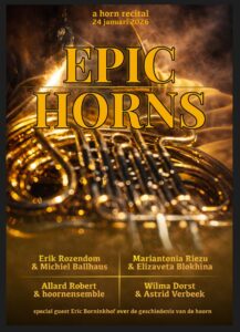 Ben jij ook zo nieuwsgierig naar het verhaal van de hoorn? En naar het prachtige, warme geluid van de ziel van het orkest? Kom dan op zaterdag 24 januari 2026 genieten van een inspirerende mini-masterclass door Eric Borninkhof van Rimsky Horns, gevolgd door een schitterend concert waarin de hoorn de hoofdrol speelt.